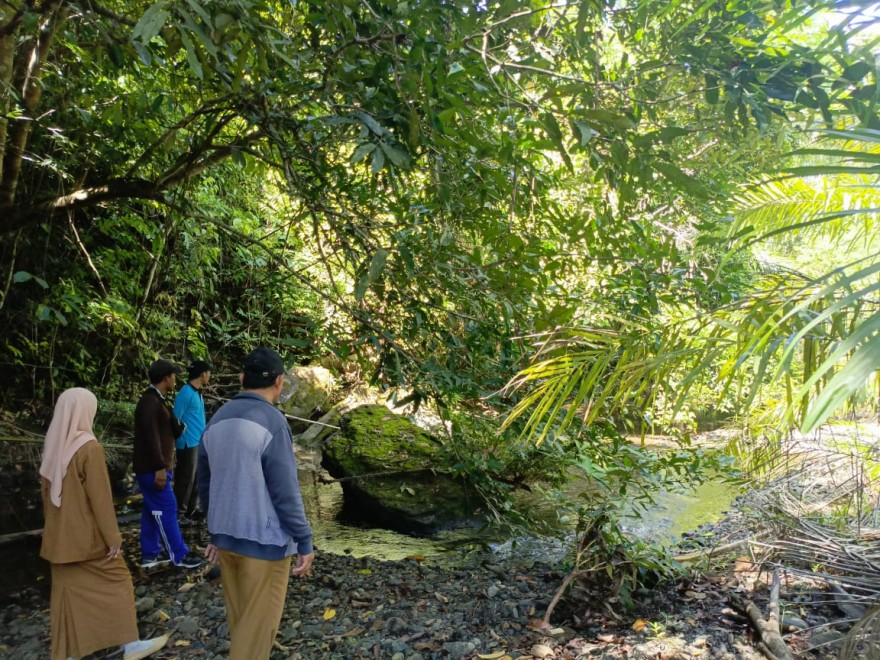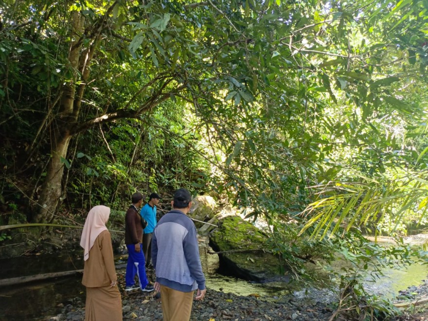 Aparatur Desa bersama anggota BPD survei lokasi yang akan di bangun Bendungan sebagai pasokan air untuk wilayah RT 11 dan RT 12, Rabu (04/02/2024).